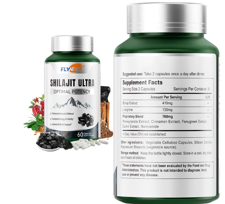 المكونات الممتازة: مستخلص شيلاجيت يحتوي على 50% من حمض الفولفيك، 410 ملجم لكل وجبة، ممزوج بـ 130 ملجم من إل-أرجينين ومستخلصات نباتية مفيدة أخرى مثل الرمان واليانسون والحلبة والقرفة والكمون.